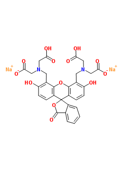 - InChI=1/C30H26N2O13.2Na/c33-21-7-5-19-27(16(21)9-31(11-23(35)36)12-24(37)38)44-28-17(10-32(13-25(39)40)14-26(41)42)22(34)8-6-20(28)30(19)18-4-2-1-3-15(18)29(43)45-30;;/h1-8,33-34H,9-14H2,(H,35,36)(H,37,38)(H,39,40)(H,41,42);;/q;2*+1/p-2