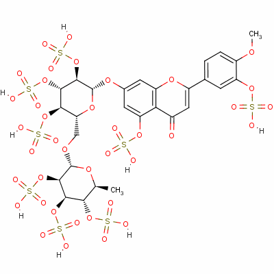 - InChI=1/C28H32O39S8/c1-10-21(62-70(36,37)38)23(64-72(42,43)44)25(66-74(48,49)50)27(56-10)55-9-19-22(63-71(39,40)41)24(65-73(45,46)47)26(67-75(51,52)53)28(59-19)57-12-6-17-20(18(7-12)61-69(33,34)35)13(29)8-15(58-17)11-3-4-14(54-2)16(5-11)60-68(30,31)32/h3-8,10,19,21-28H,9H2,1-2H3,(H,30,31,32)(H,33,34,35)(H,36,37,38)(H,39,40,41)(H,42,43,44)(H,45,46,47)(H,48,49,50)(H,51,52,53)/t10-,19+,21-,22+,23+,24-,25+,26+,27+,28+/m0/s1