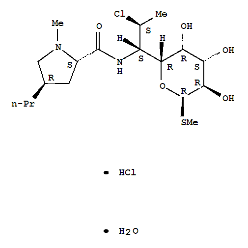 - InChI=1/C18H33ClN2O5S.ClH/c1-5-6-10-7-11(21(3)8-10)17(25)20-12(9(2)19)16-14(23)13(22)15(24)18(26-16)27-4;/h9-16,18,22-24H,5-8H2,1-4H3,(H,20,25);1H/t9?,10-,11+,12?,13+,14-,15?,16?,18?;/m1./s1