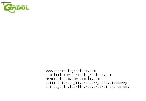 (info@sports-ingredient.com)DaXingAnLing Gadol Sports Ingredient Co., Ltd lies in JiaGeDaQi Town,DaXingAnLing city where is the only no- pollution forest of the world. It is a research, development, and production of specialized enterprises plant extracts.Company invests more than three million to dispose advanced equipment and instrumentation, advanced technical process . All staff have received professional skills training and also have had the suitable technical development ability. Company product raw material mainly is the wild pure natural extraction and Company movement nutrition product raw material mainly is the wild pure natural extraction. Our main products as follows: 1,herb extract 2.pigment 3.animal extract 4.fruit powder 5.anthocyanin http://www.sports-ingredient.com/ T:86-0452-6102658 F:86-0452-6102659 E-mail:info@sports-ingredient.com