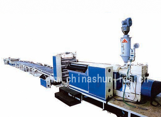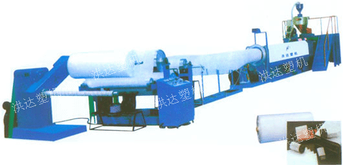 Foaming net production line fits for producing foaming net which can be used to pack fruit, vegetable, bud and bottles.