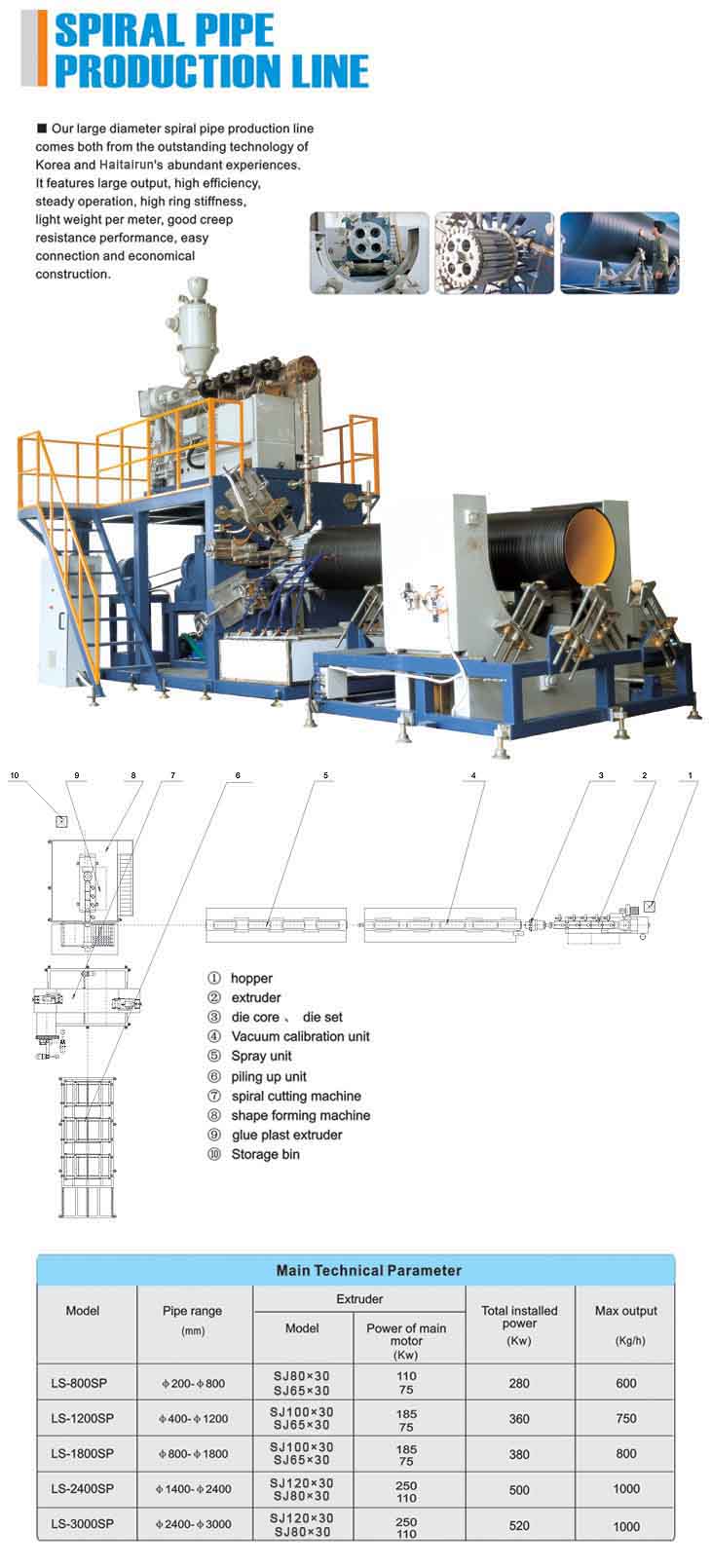 Our large diameter spiral production line comes both from the outstanding technology of Korea and Haitaisheng’s abundant experience. It features large output, high efficiency, steady operation, high r..