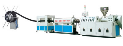 The unit is used to produce PVC soft pipe with steel wire reinforcing.The pipe wall is soft PVC plastic..